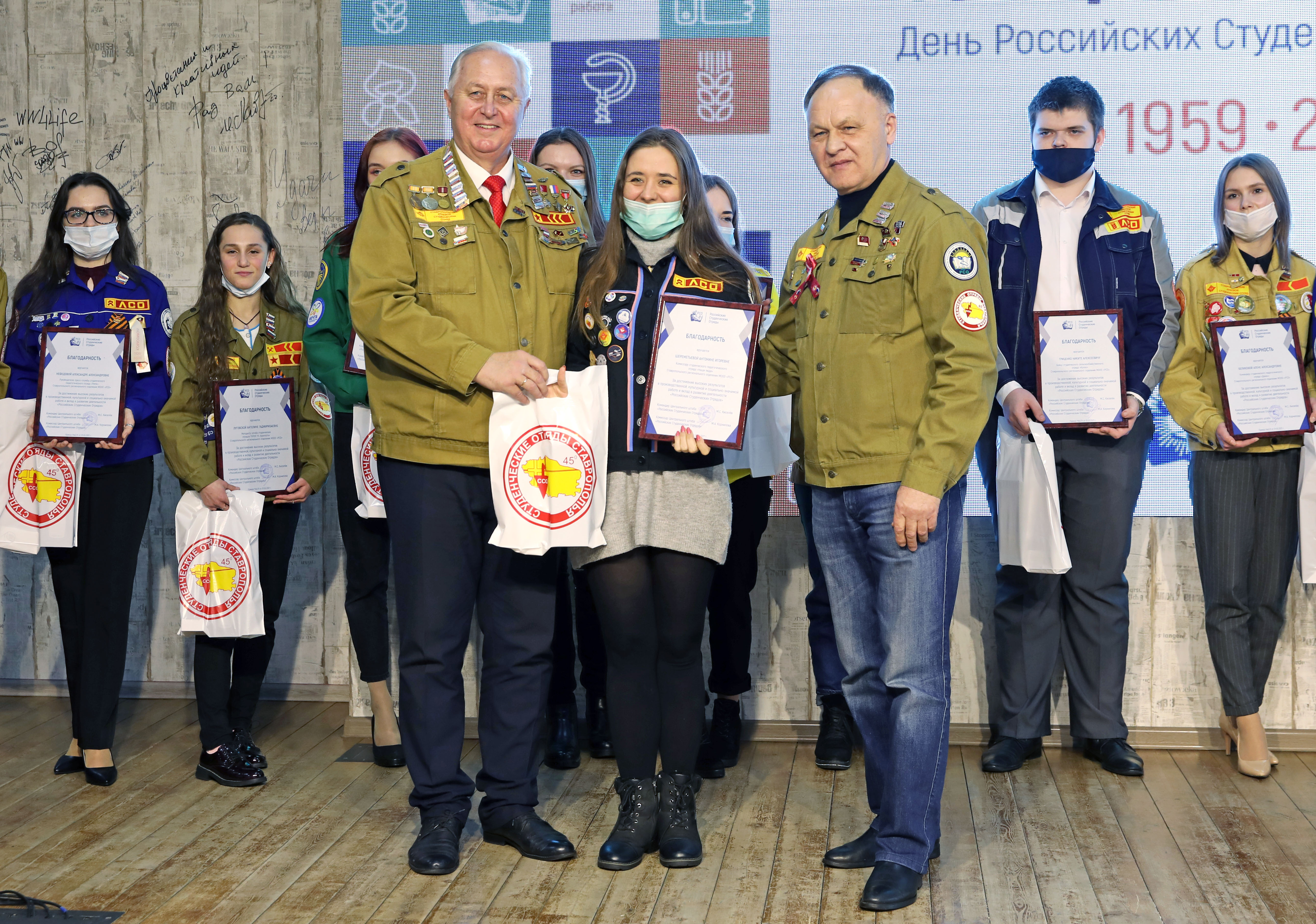 Заслуженные награды в этот день получили лучшие бойцы ставропольских студотрядов и ветераны движения. Шести самым активным участникам Дмитрий Судавцов вручил высшую награду Молодежной общероссийской общественной организации «Российские Студенческие Отряды» (РСО) – Почётный знак «За активную работу в студенческих отрядах». За достижение высоких результатов в производственной, культурной и социально-значимой работе и вклад в развитие деятельности «Российские Студенческие Отряды» благодарность из рук депутата, ветерана движения Виктора Лозового получили еще 15 юношей и девушек.
