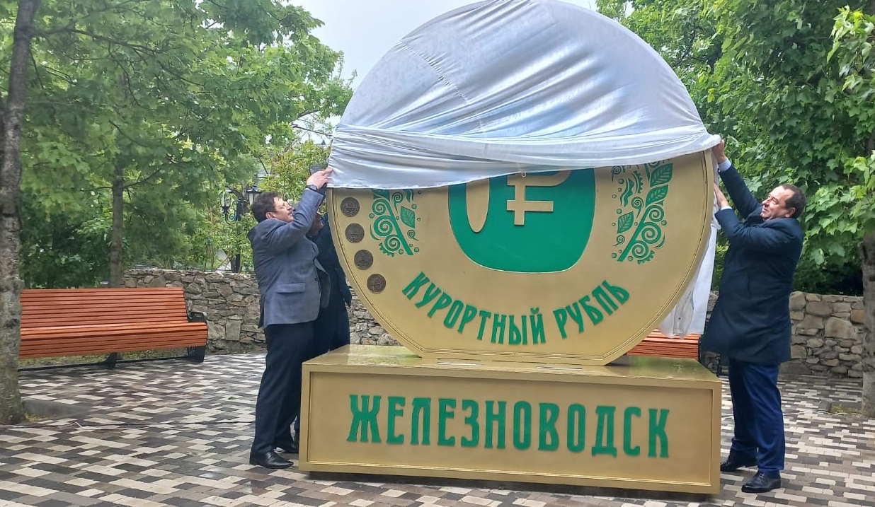 Депутаты приняли участие в торжественном открытии скульптурной композиции курортного рубля, которое прошло в Курортном парке в Купеческом сквере. Также законодателям были представлены другие арт-объекты – 6 бронзовых «плюшек». Они расположены у каждого объекта, отремонтированного на «курортные рубли».