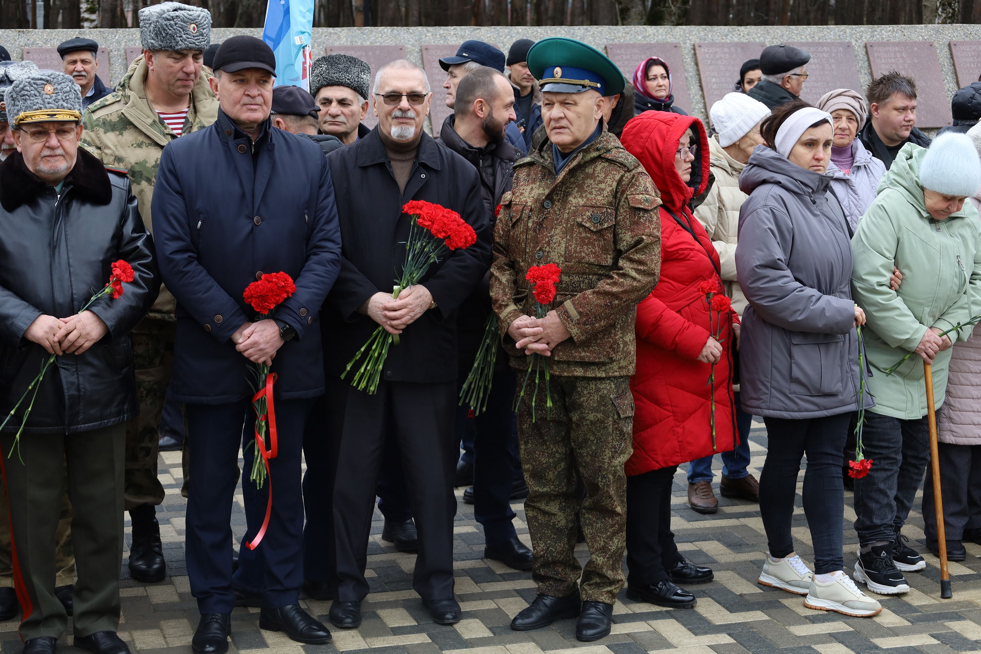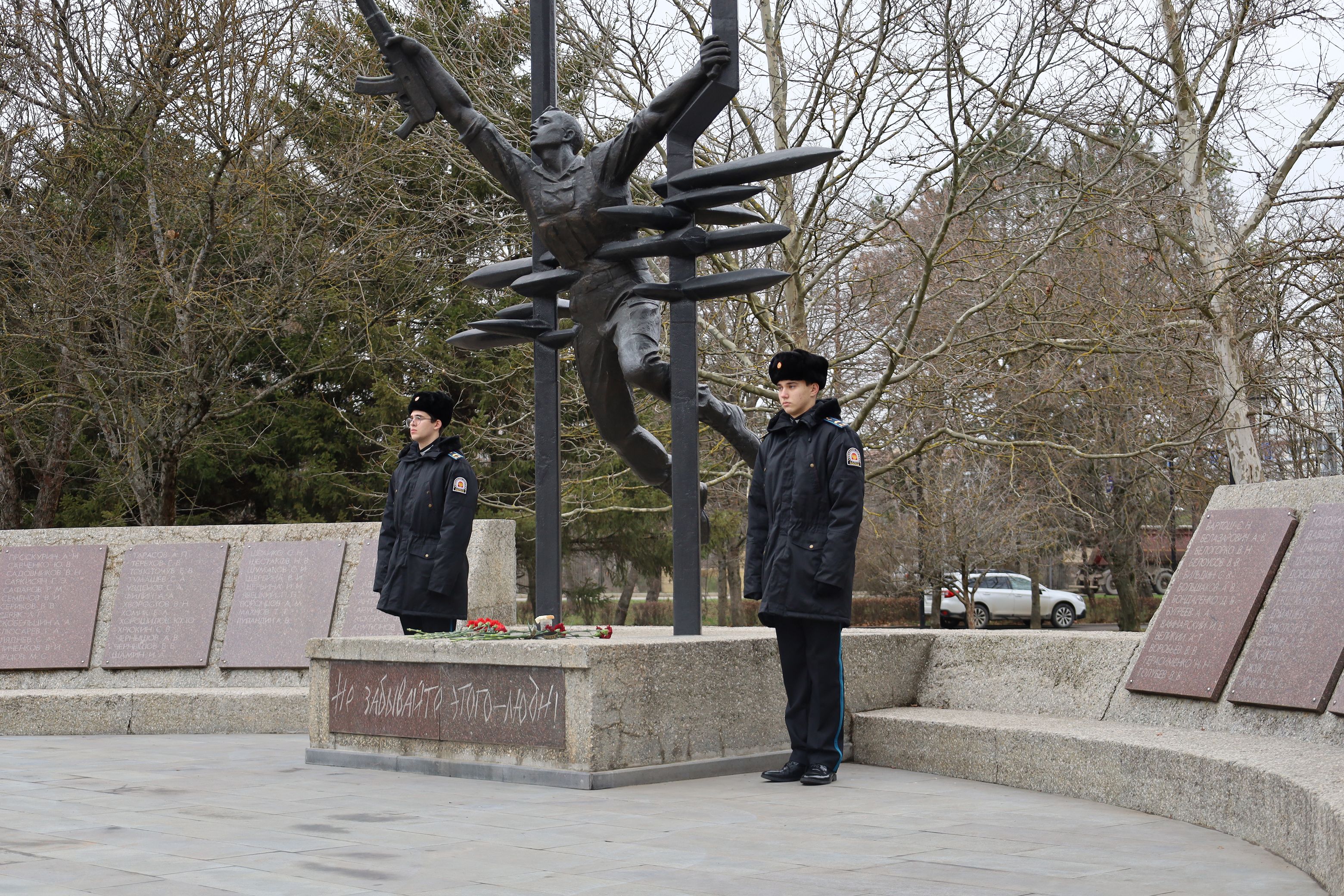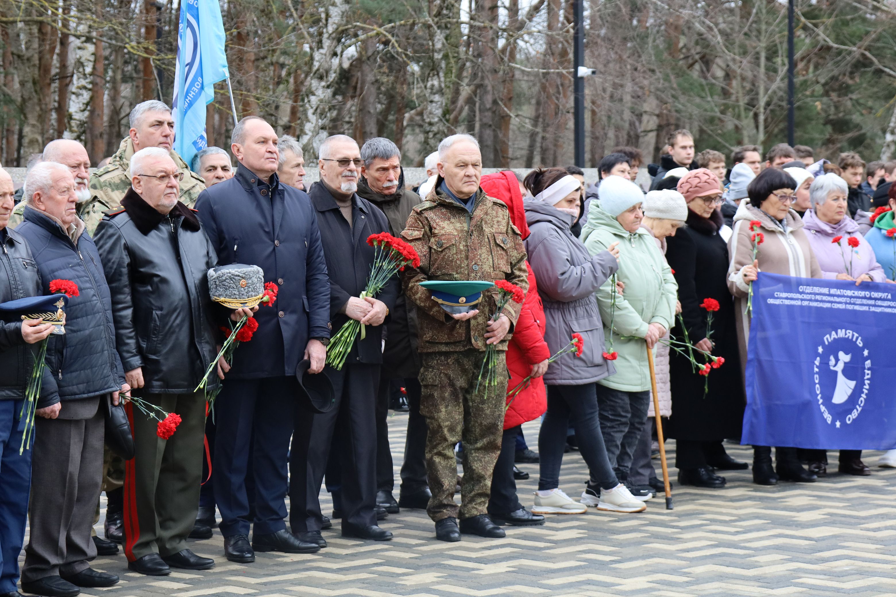 Участники митинга возложили цветы к памятнику павшим землякам, где на гранитных плитах выбиты имена более 600 ставропольчан, погибших в локальных конфликтах, а также 19 Героев Советского Союза и Российской Федерации, получивших это звание посмертно.