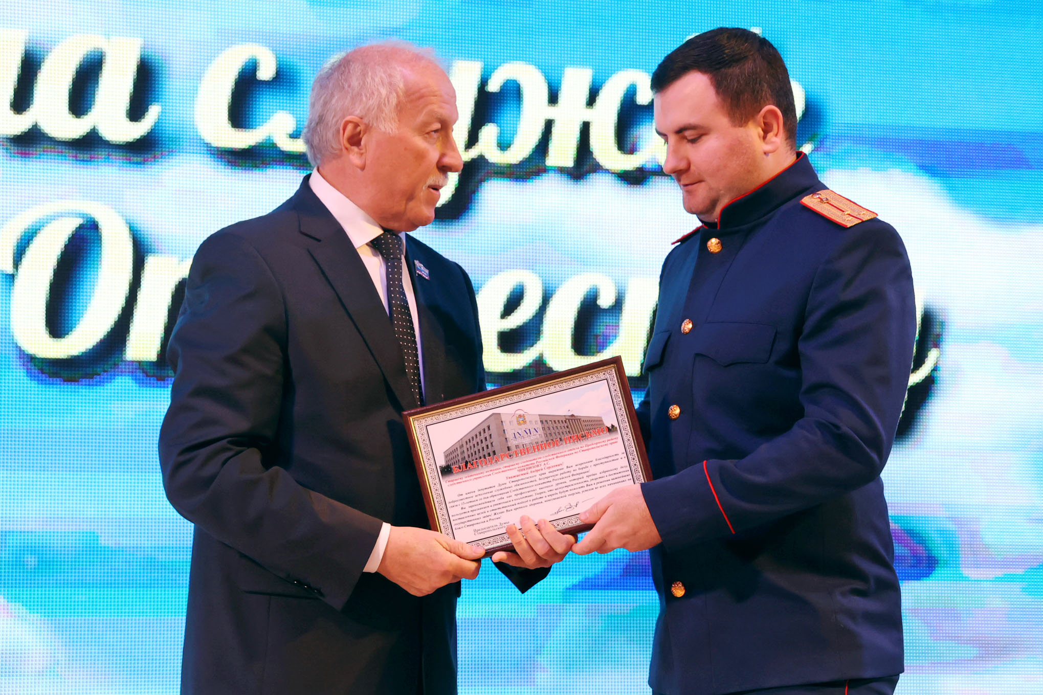 За добросовестное исполнение служебных обязанностей и безупречную работу в борьбе с преступностью отличившимся сотрудникам следственных органов Ставропольского края Николай Великдань вручил Почетные грамоты, благодарственные письма и ценный подарок Думы региона.