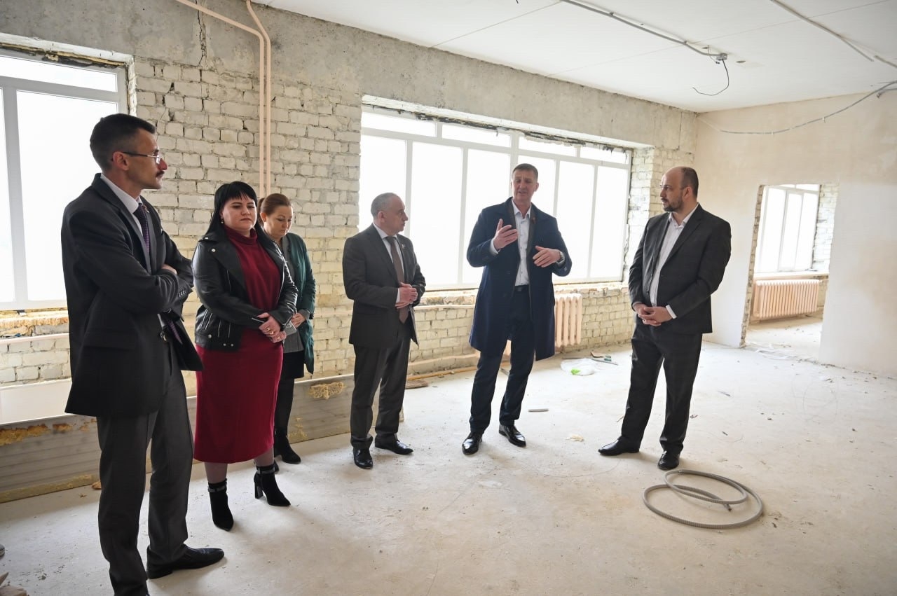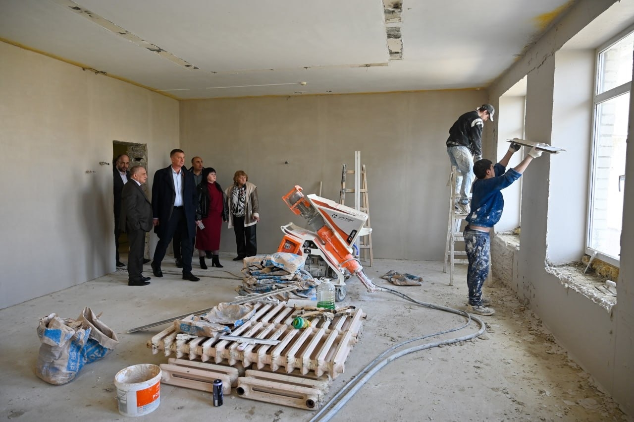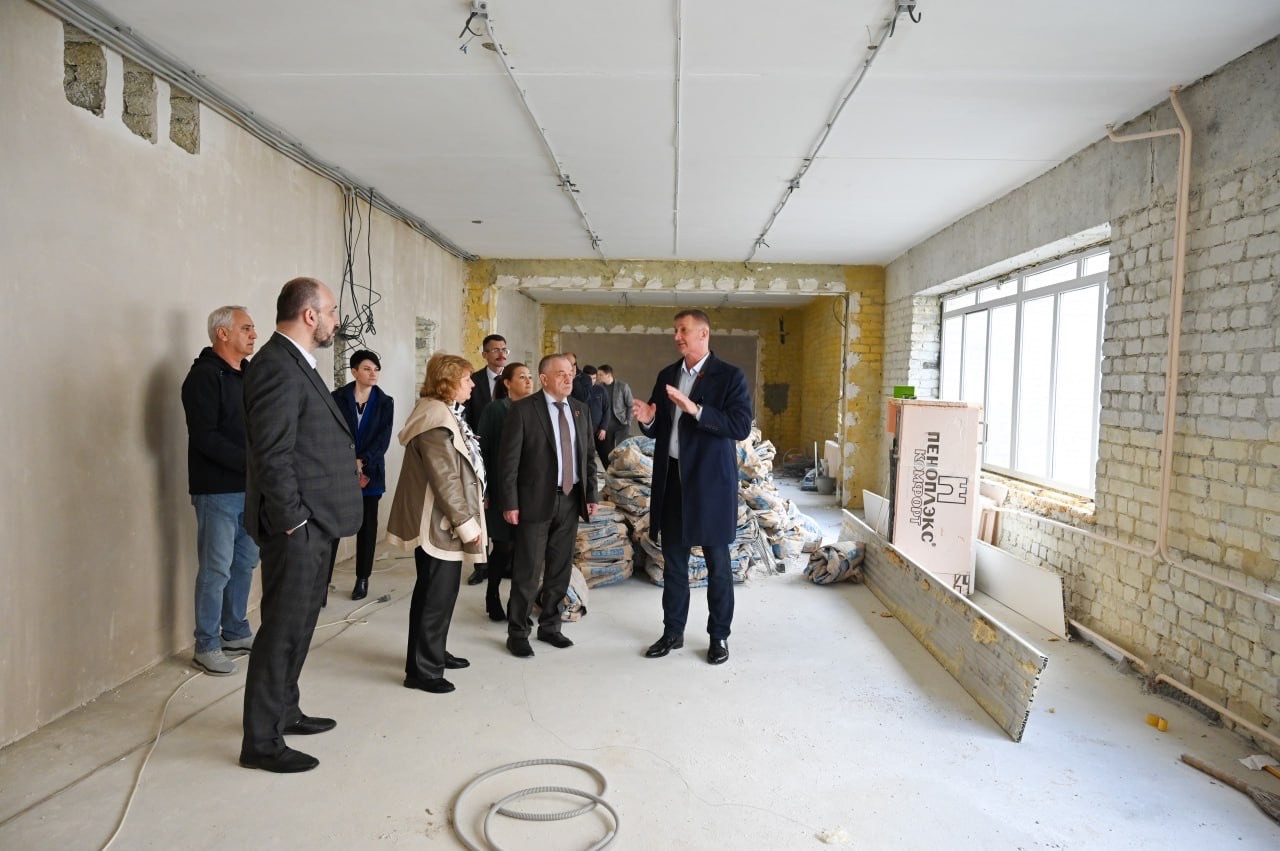 Вместе с подрядчиком ООО «Проект Феникс», администрацией и руководством учебного заведения оценили этап работ. Сейчас строители ведут штукатурку стен и прокладывают инженерные сети.