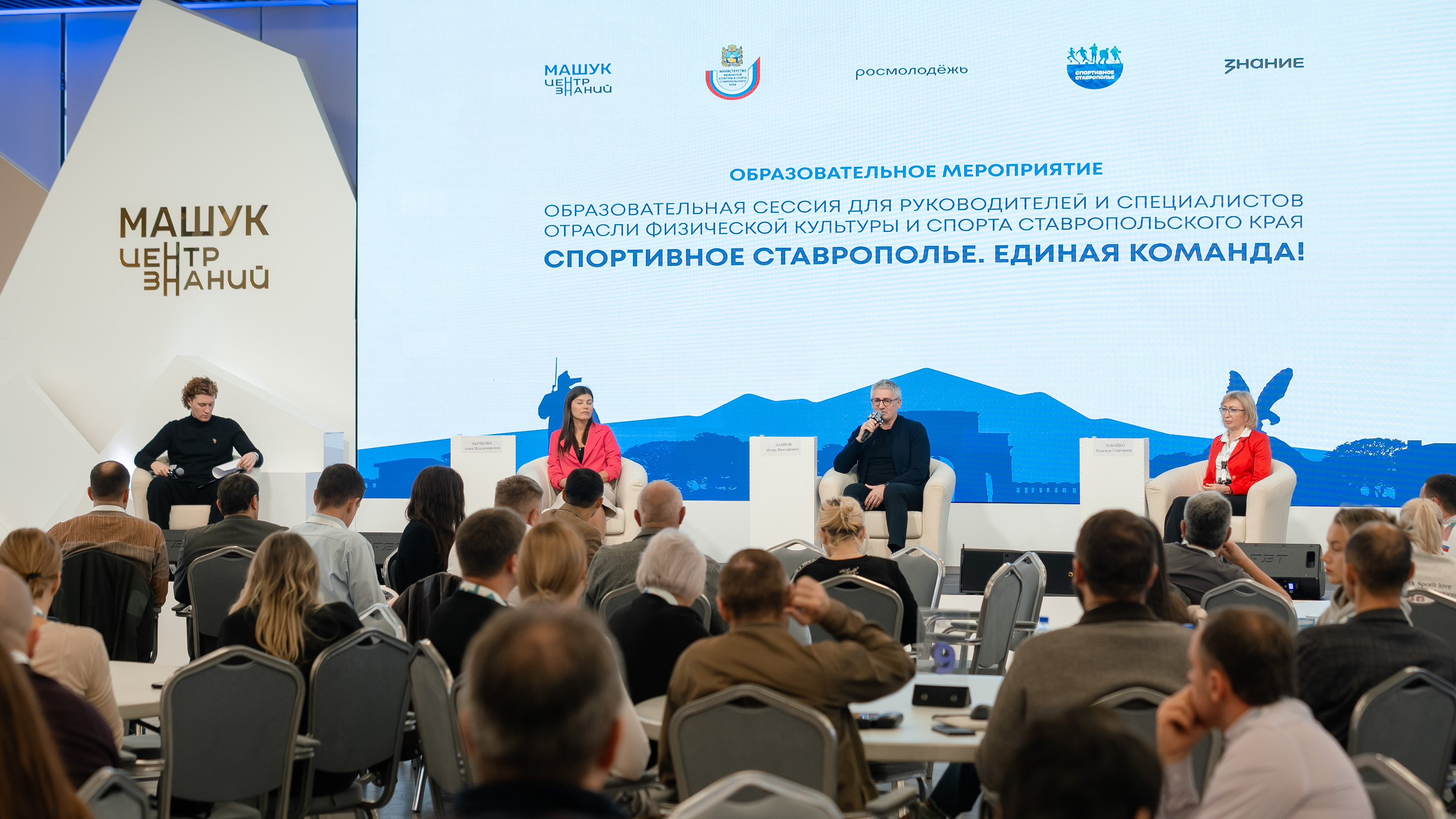 Игорь Лавров вместе с прославленными спортсменками – руководителем СШОР по легкой атлетике, четырехкратной чемпионкой Советского Союза, мастером спорта СССР международного класса Надеждой Лобойко и триатлонисткой, участницей Паралимпийских игр, семикратной чемпионкой России по паратриатлону, мастером спорта Анной Бычковой провел для участников образовательного семинара панельную сессию на тему, как спорт воспитывает личность.