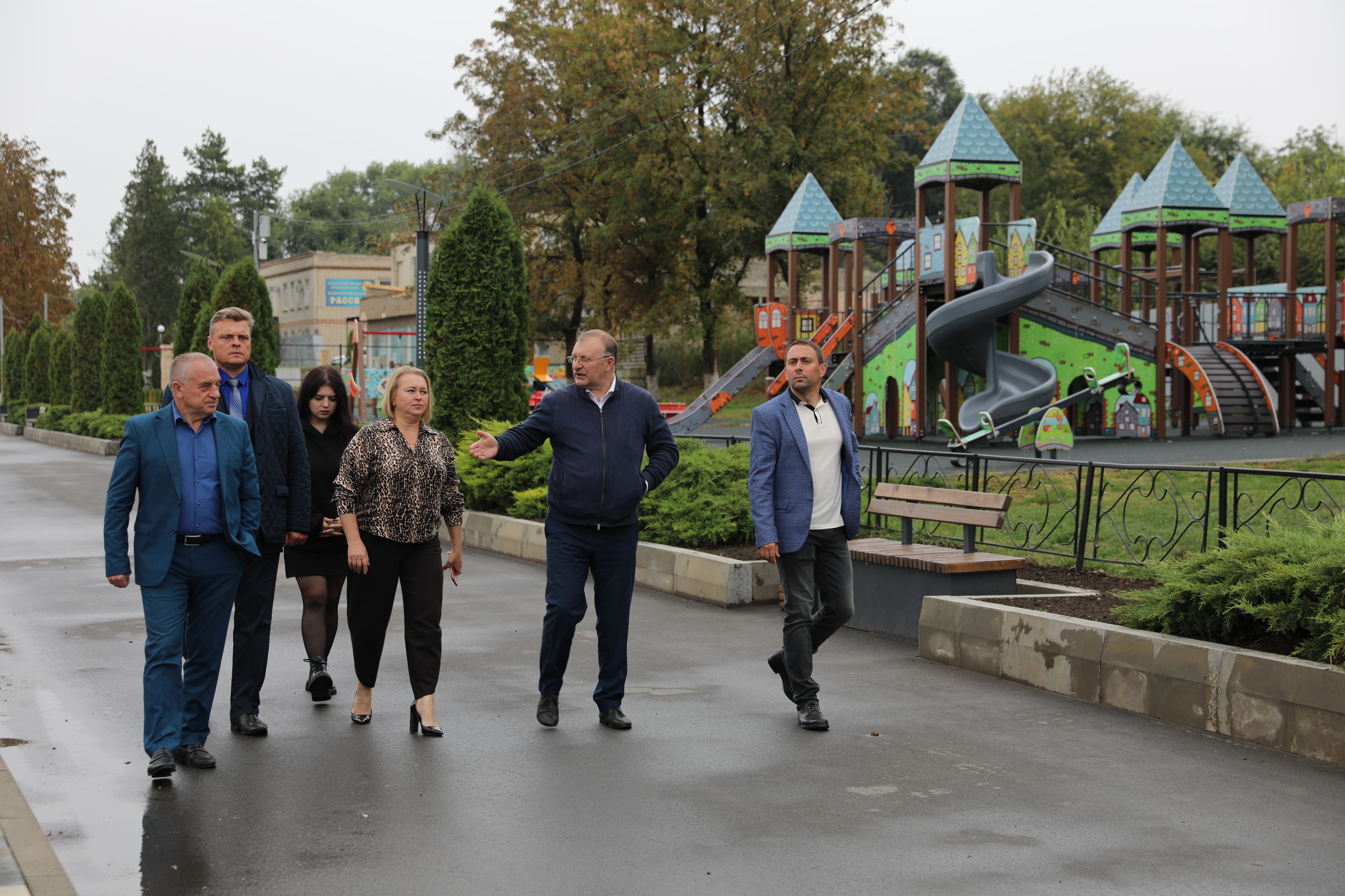 Краевые депутаты осмотрели благоустройство площади по улице Мира в станице Староизобильной. Объект полностью готов. Готовится торжественное открытие обновленного и современного пространства для отдыха жителей станицы. Здесь оборудованы зоны отдыха с лавочками, навесами и перголами, появились клумбы и газоны, установлены арт-объекты, фонари и камеры видеонаблюдения. Для детворы обустроили уличную игровую площадку.