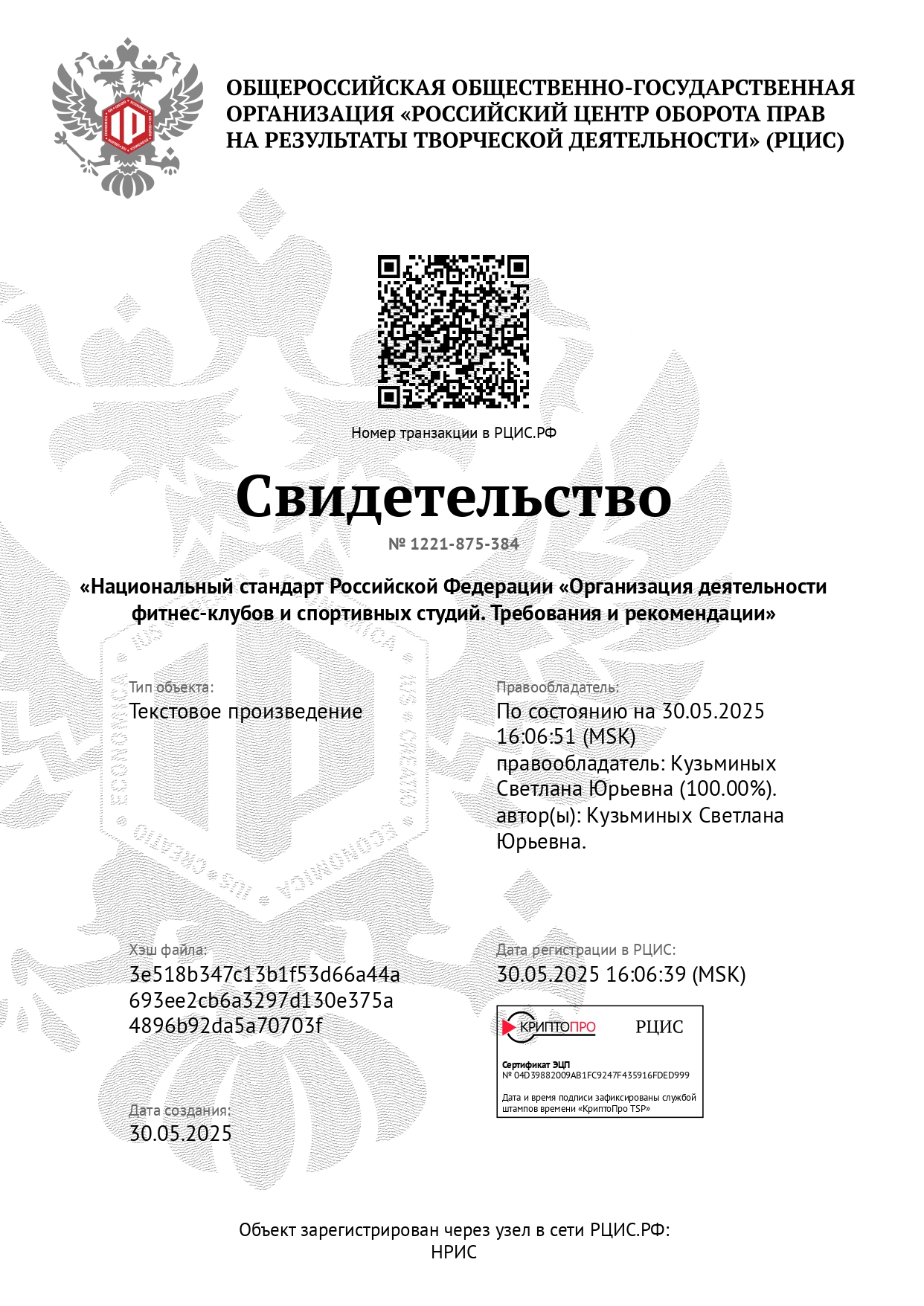 Кроме того, Светлана продолжила работу над своим проектом, направленным на совершенствование деятельности фитнес клубов и спортивных студий, установление единых требований к специалистам по фитнесу. Проведен анализ действующего законодательства и юридическая экспертиза проекта, разработаны разделы, касающиеся терминов, определений и нормативно-правовых актов, подлежащих изменению, план по информационному продвижению проекта. В рамках продвижения проекта разработан семинар "Фитнес и здоровье в эпоху перемен".